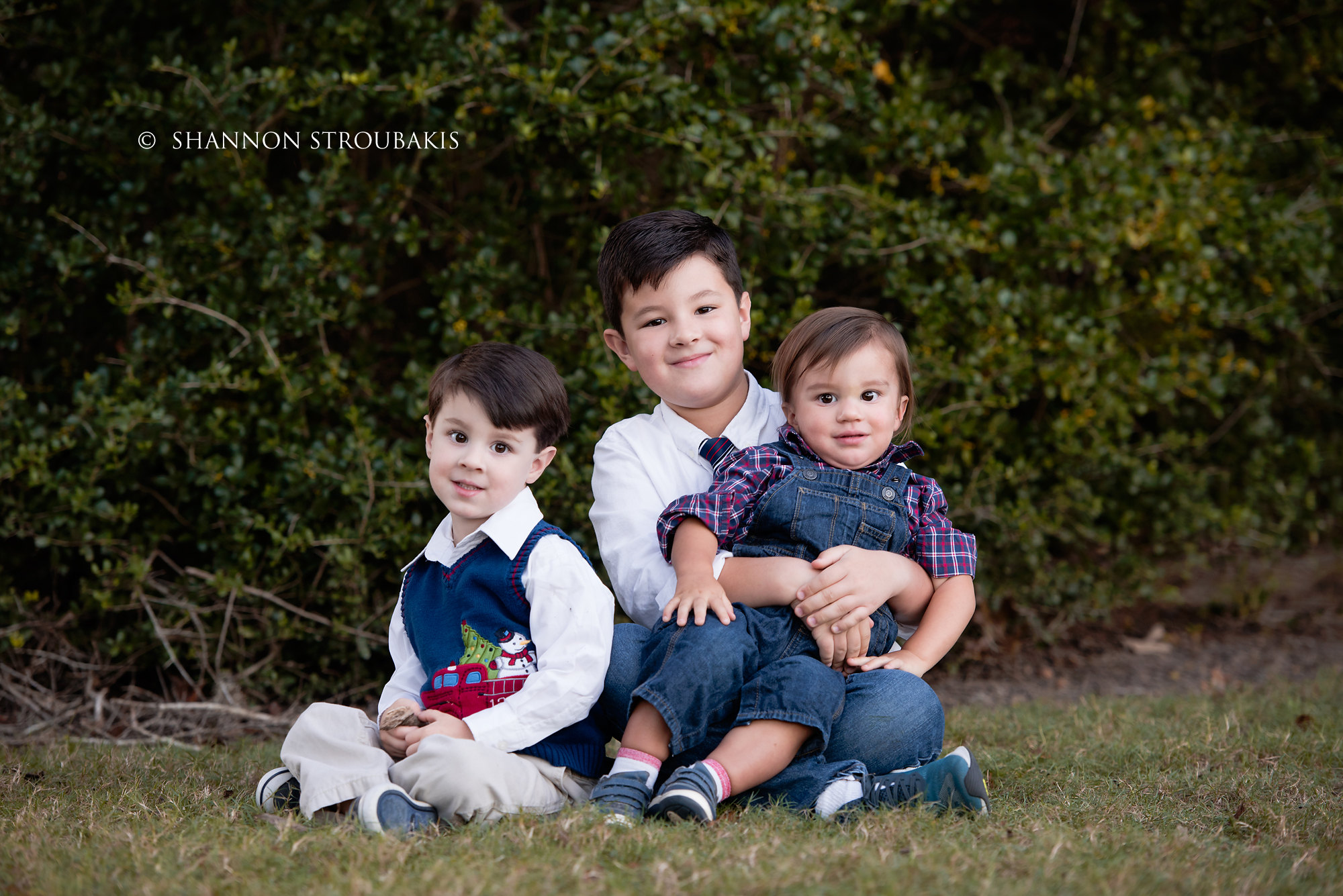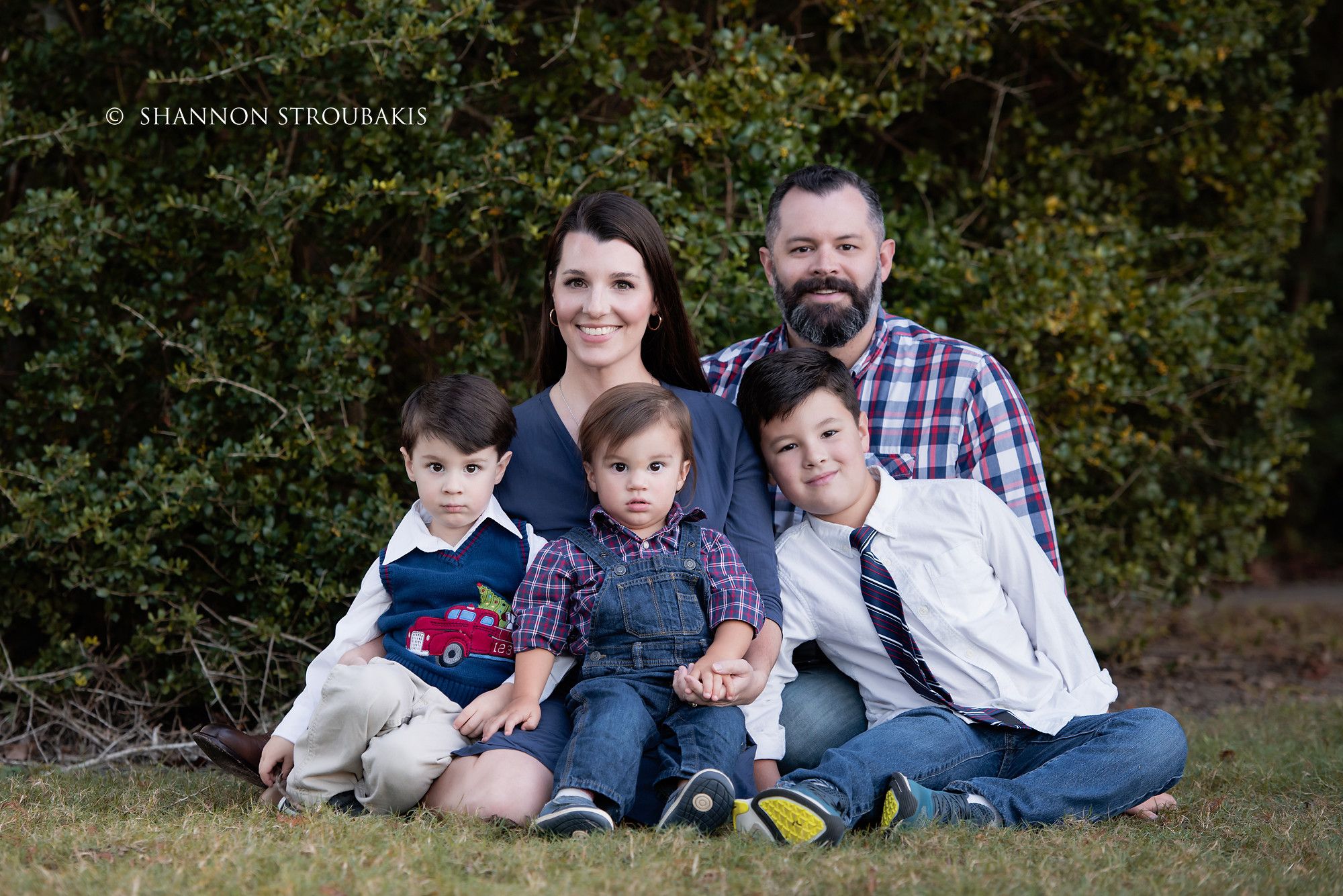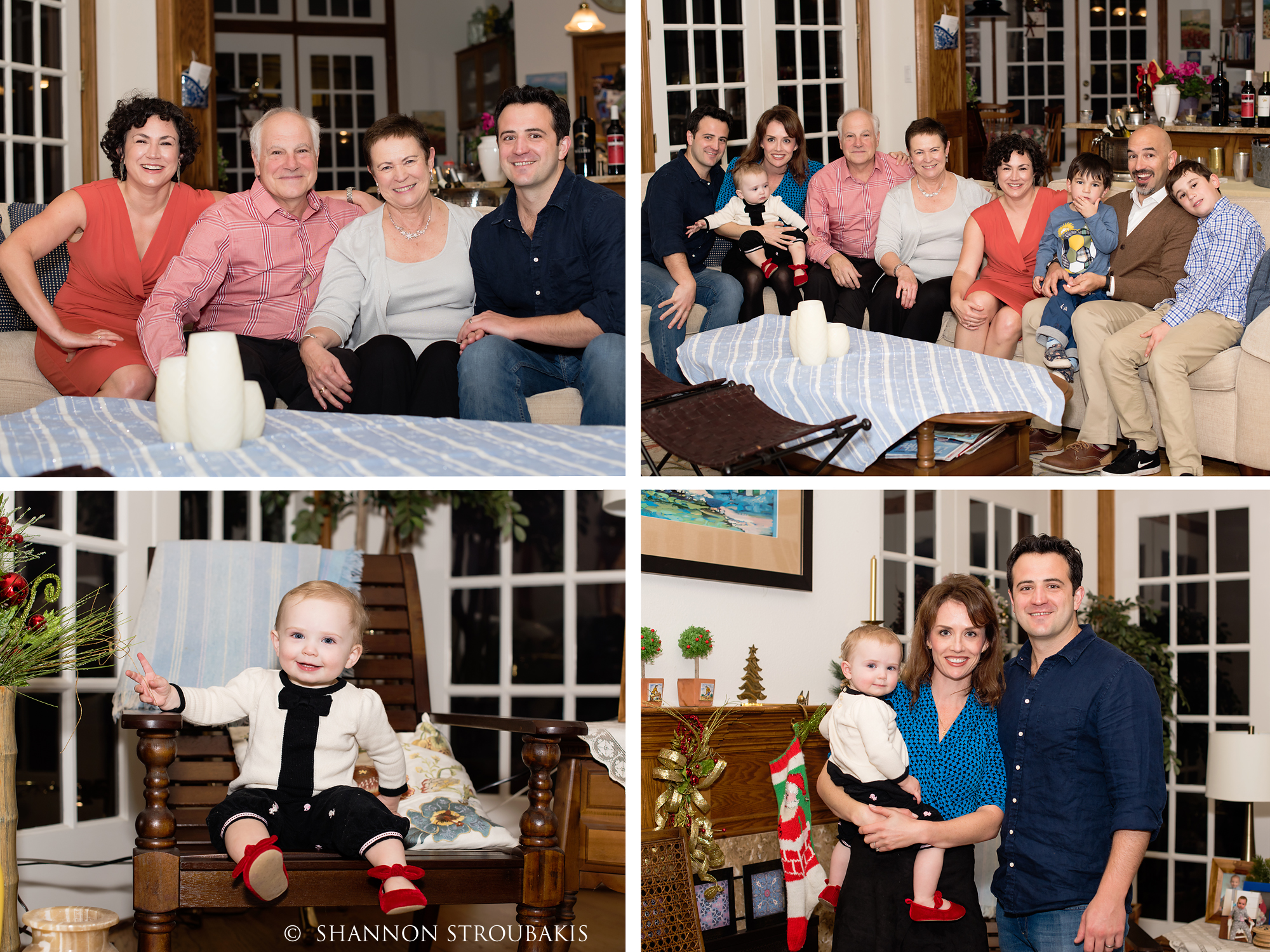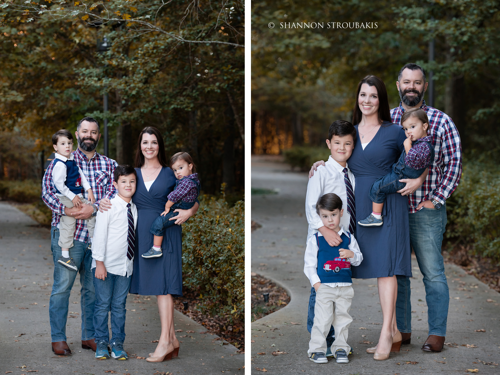 Look around your property at the time the shoot will be, and see if you have a nicely lit (open shade, not in direct sunlight) space with no distractions. A backdrop of trees is always pretty, to add some festive greenery. If you have that perfect spot, fantastic! That can definitely make the holiday card photoshoot a little easier for everyone!