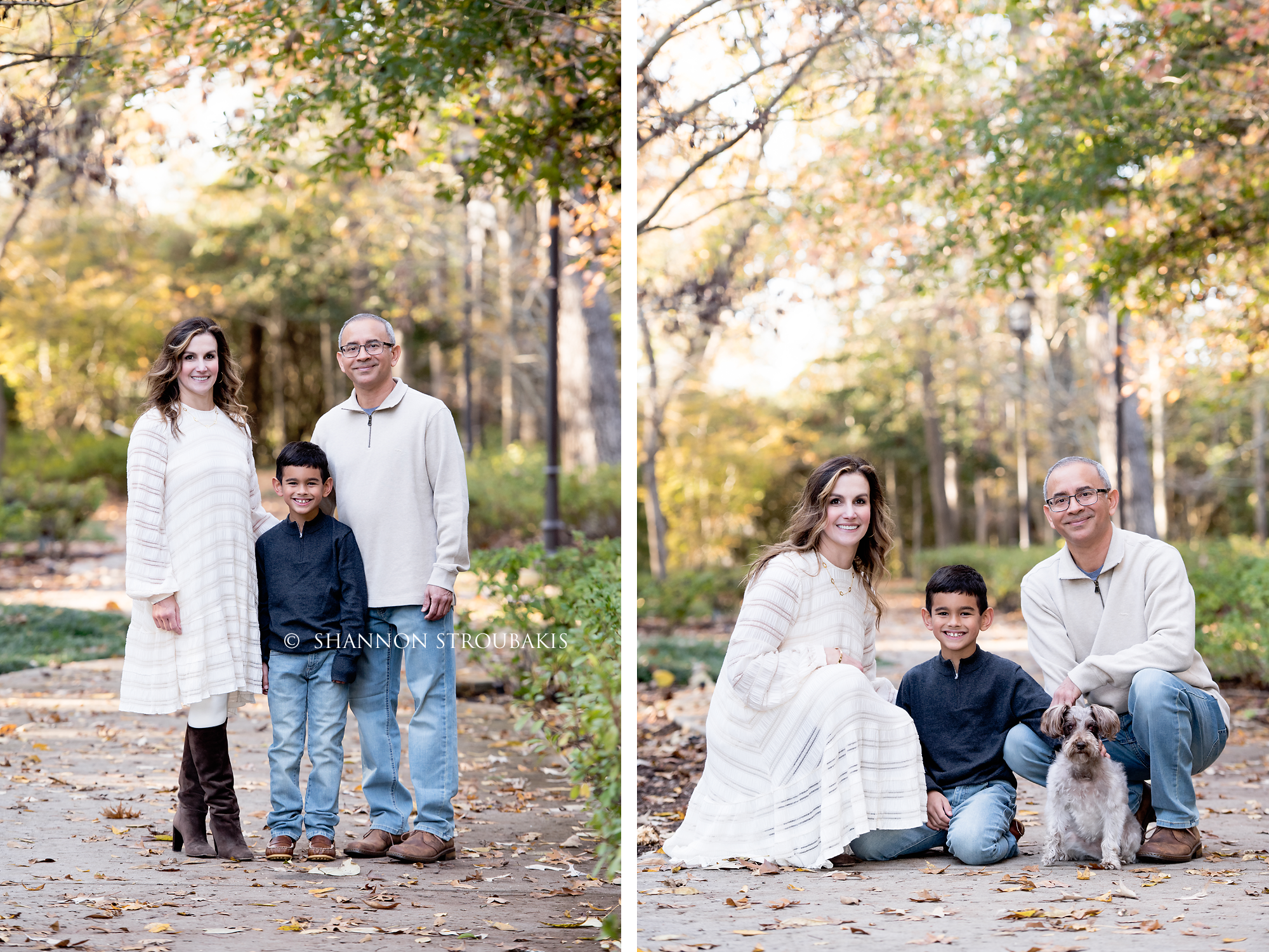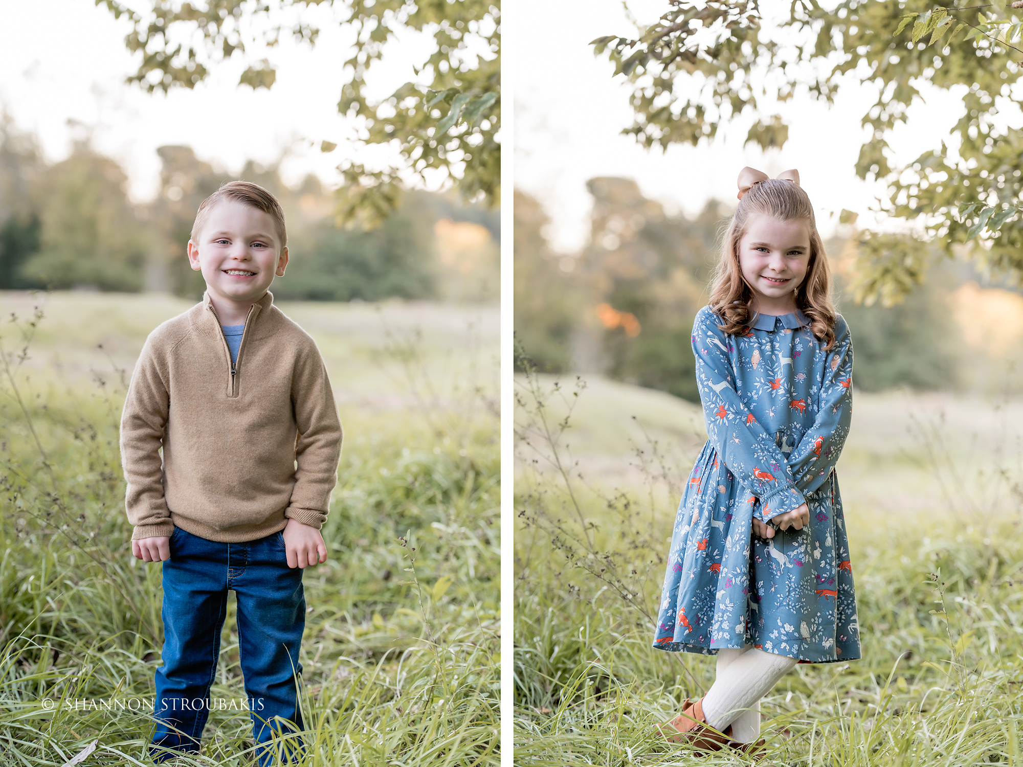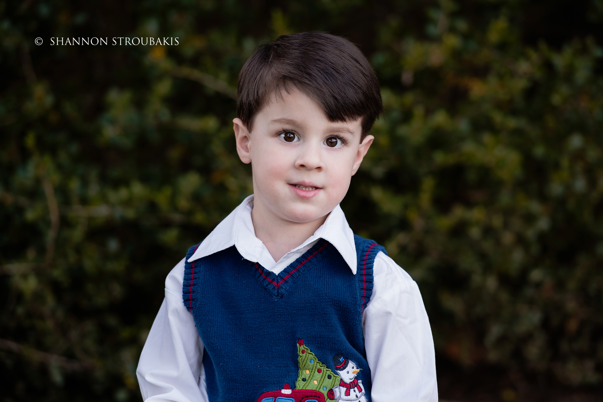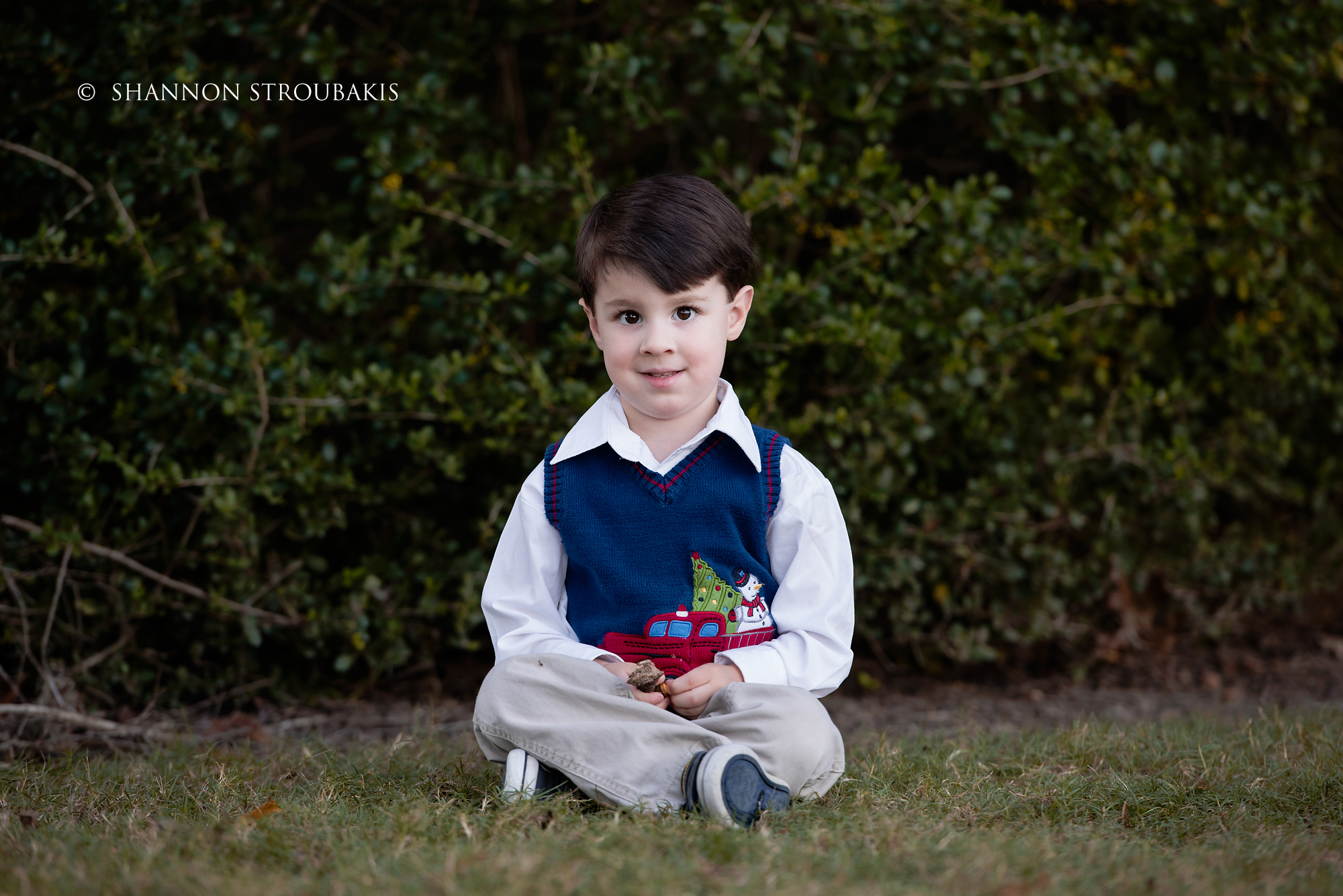 Look around your property at the time the shoot will be, and see if you have a nicely lit (open shade, not in direct sunlight) space with no distractions. A backdrop of trees is always pretty, to add some festive greenery. If you have that perfect spot, fantastic! That can definitely make the holiday card photoshoot a little easier for everyone!