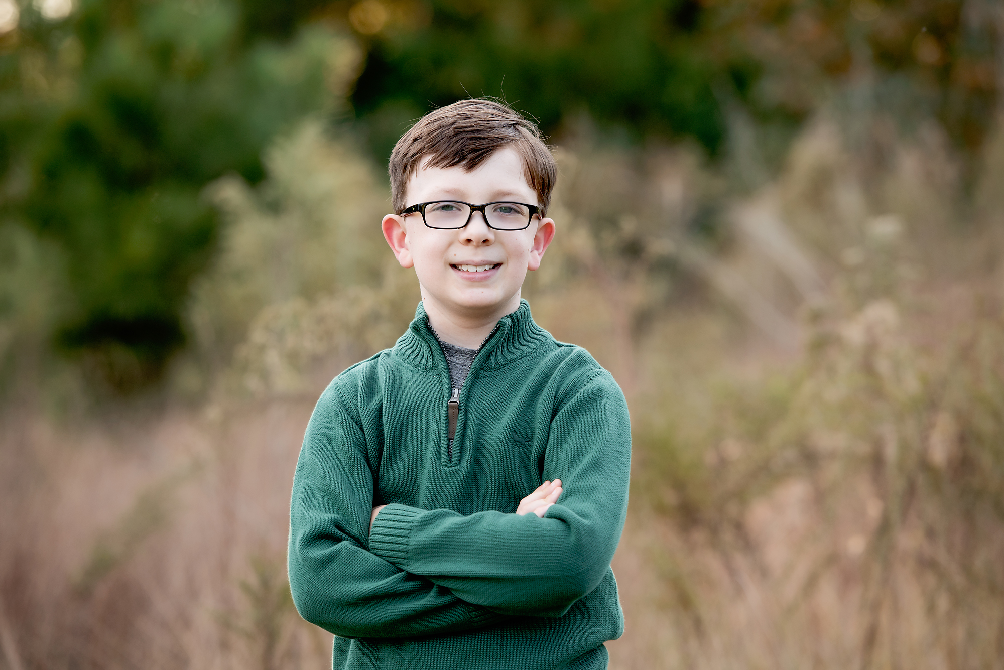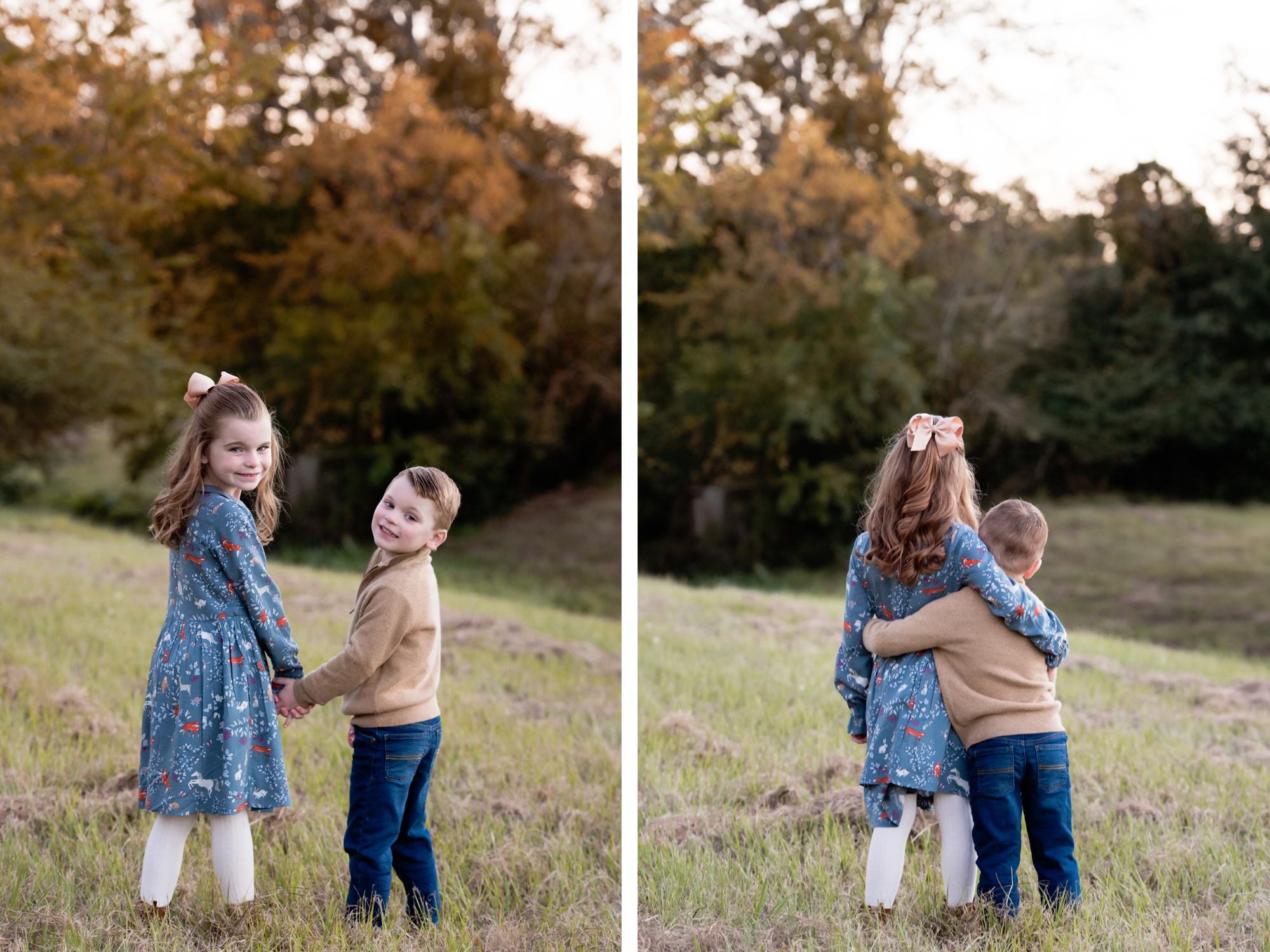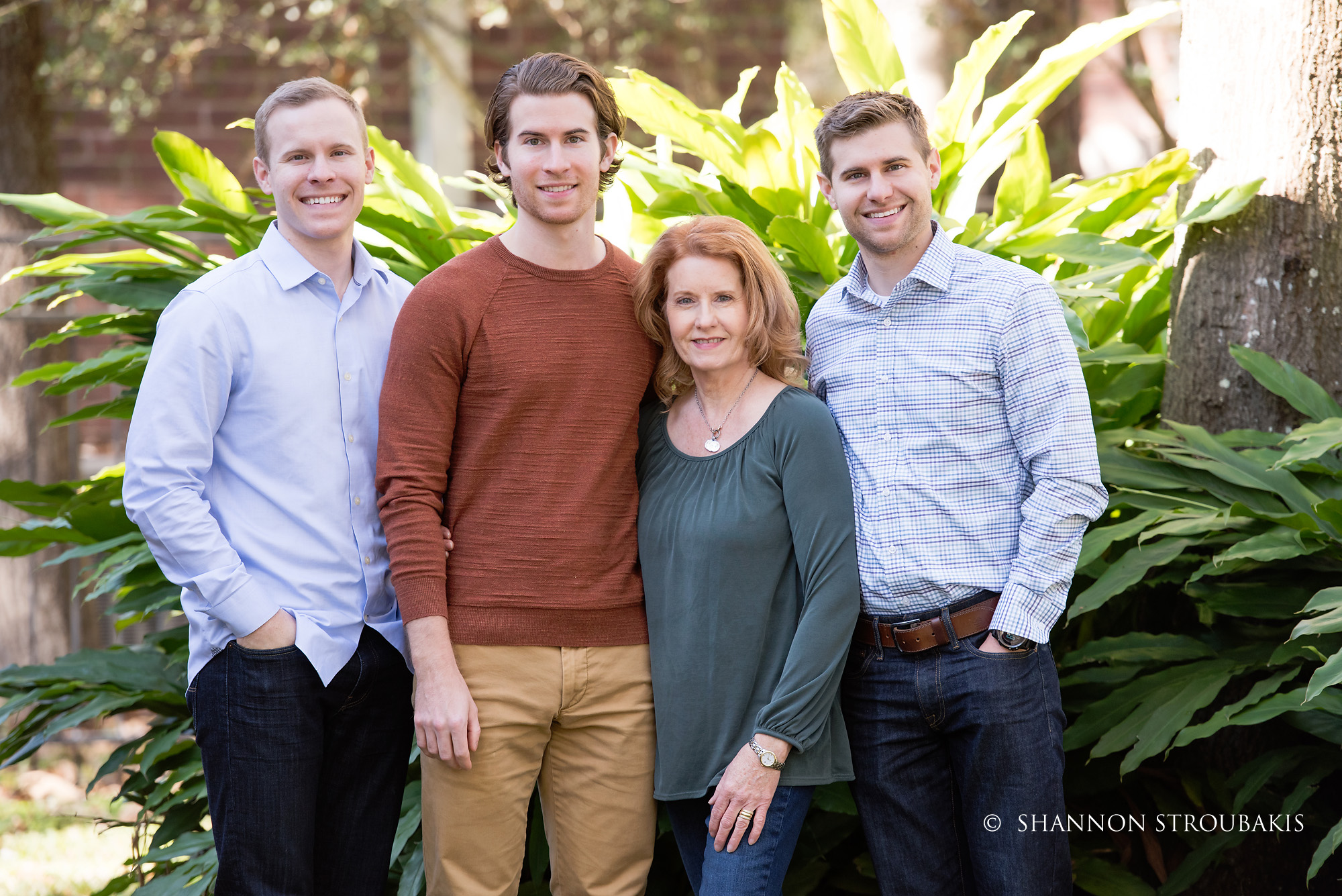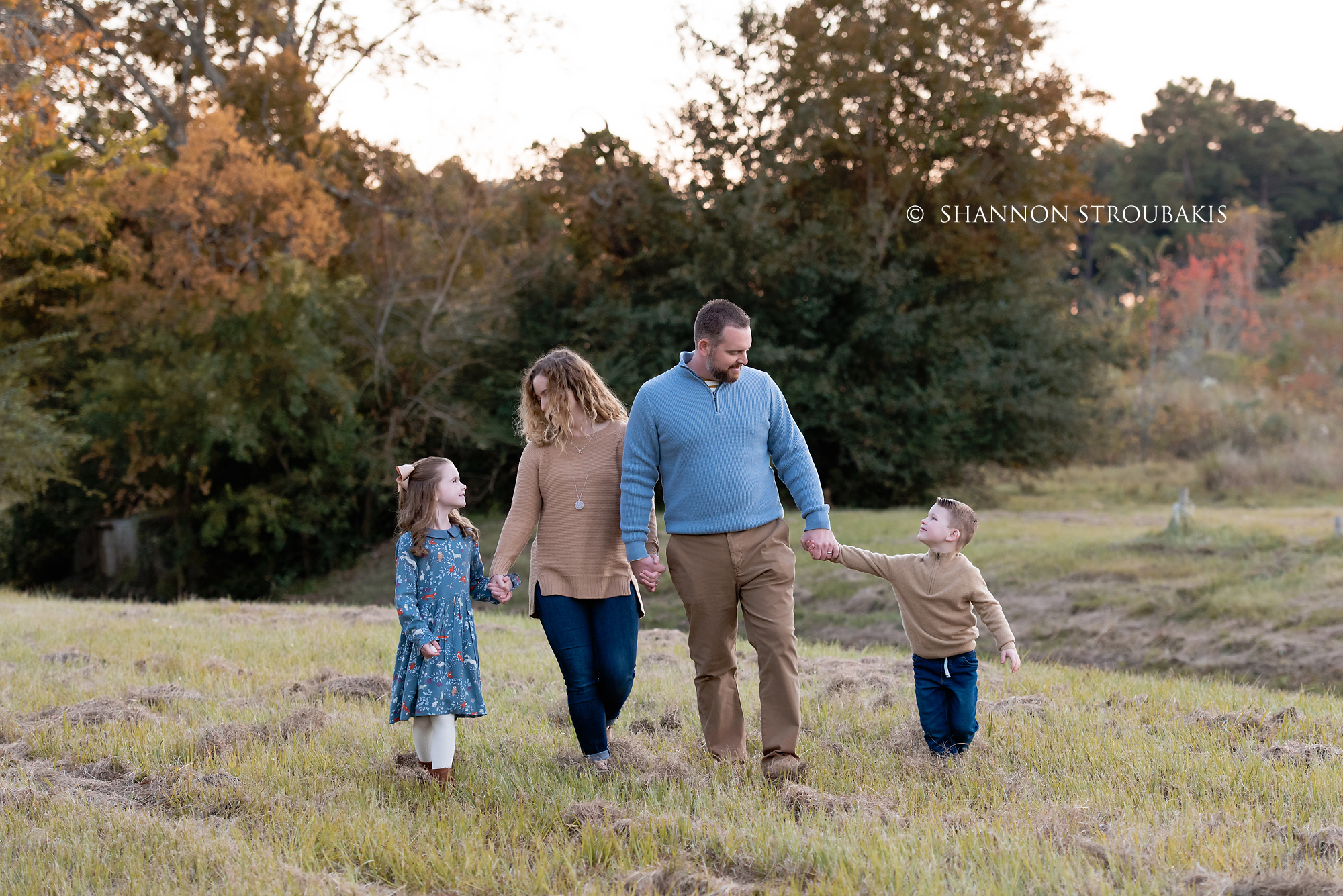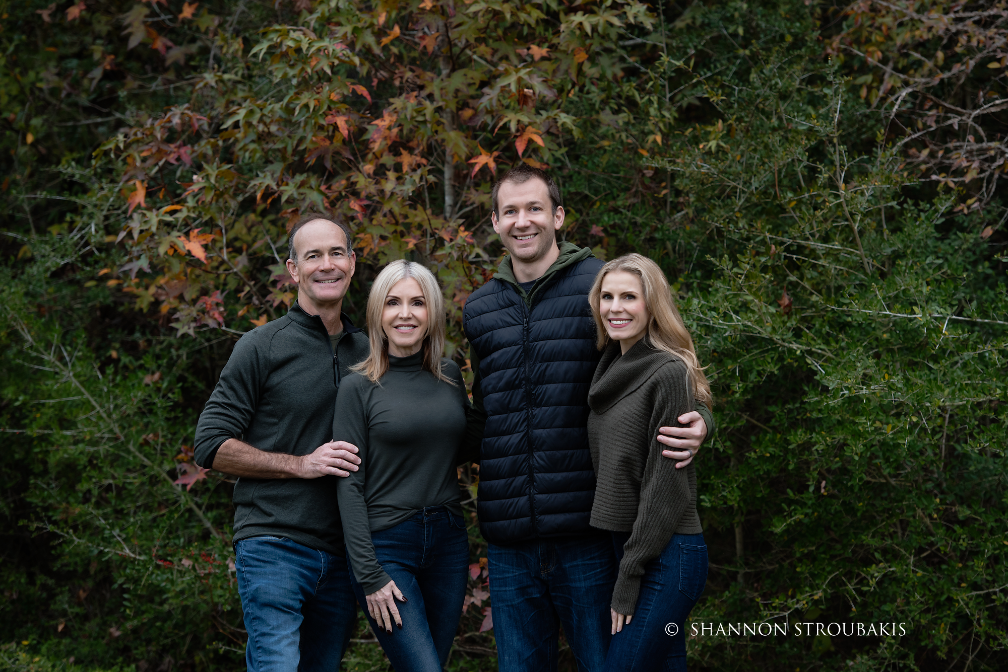 Look around your property at the time the shoot will be, and see if you have a nicely lit (open shade, not in direct sunlight) space with no distractions. A backdrop of trees is always pretty, to add some festive greenery. If you have that perfect spot, fantastic! That can definitely make the holiday card photoshoot a little easier for everyone!
