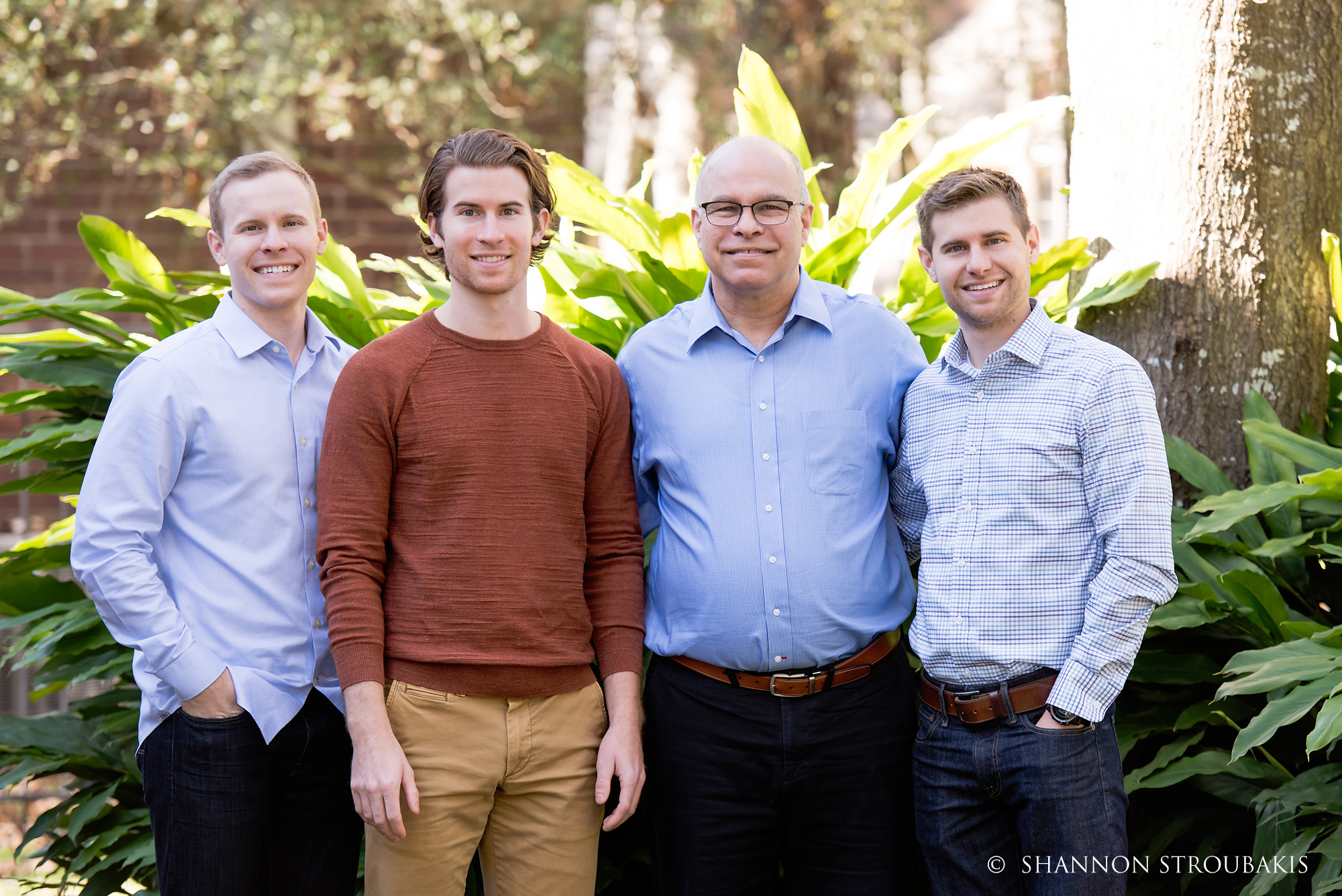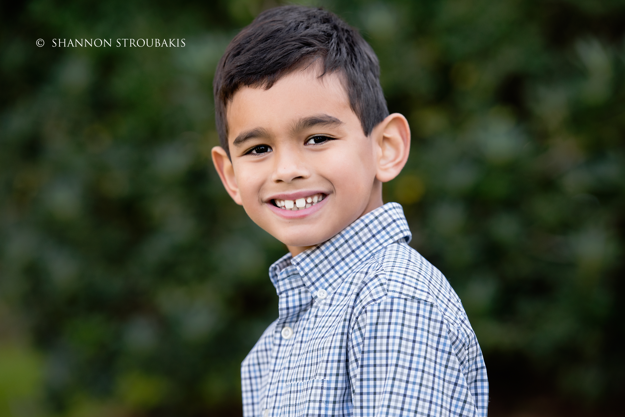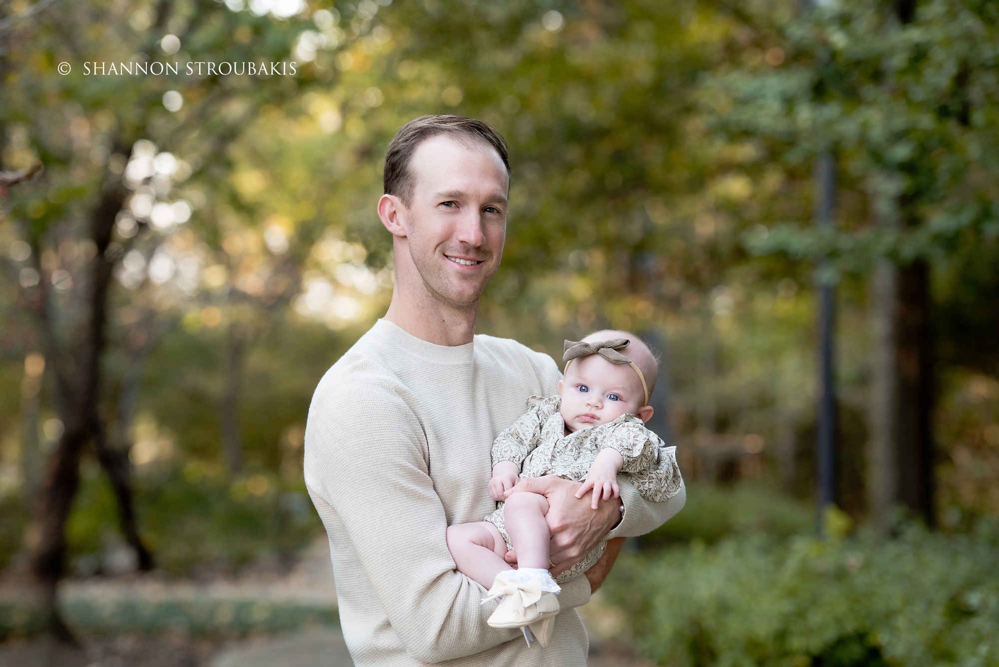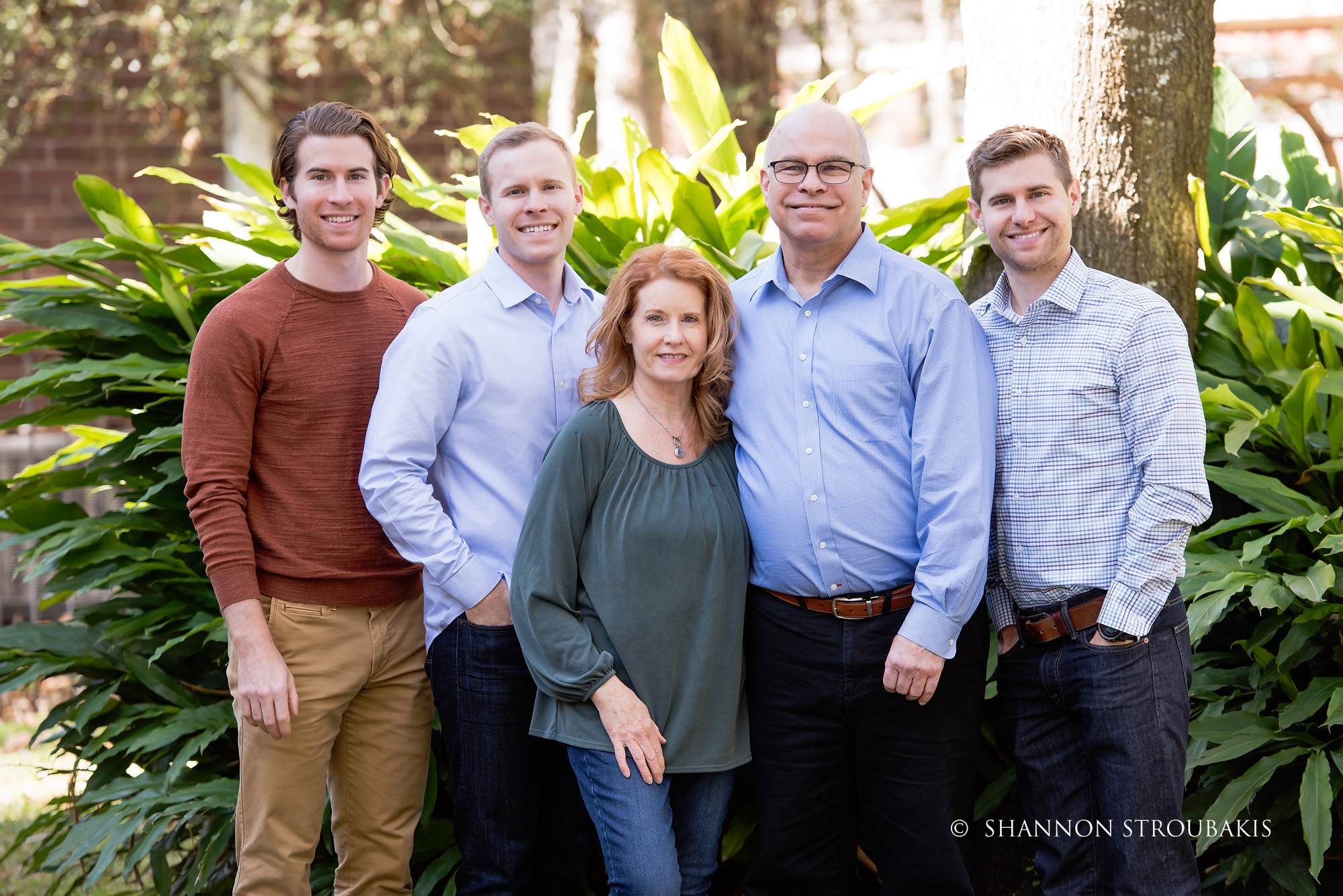 Look around your property at the time the shoot will be, and see if you have a nicely lit (open shade, not in direct sunlight) space with no distractions. A backdrop of trees is always pretty, to add some festive greenery. If you have that perfect spot, fantastic! That can definitely make the holiday card photoshoot a little easier for everyone!